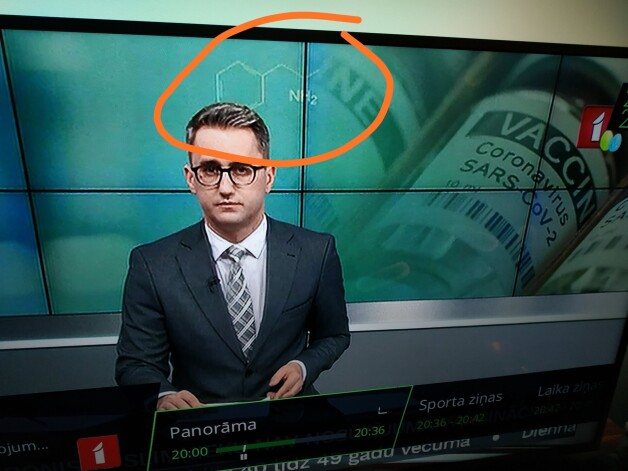 Ведущий научный сотрудник Института органического синтеза Кристапс Яудземс заметил формулу амфетамина на экране с иллюстрацией вакцины от Covid-19 в сюжете новостной программы "Panorāma" Латвийского общественного телевидения.