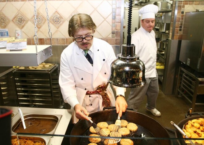 Гунарс Кирсонс у плиты на открытии ресторана Lido в торговом центре Domina