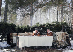 Путин и Шойгу в тайге в марте 2021 года