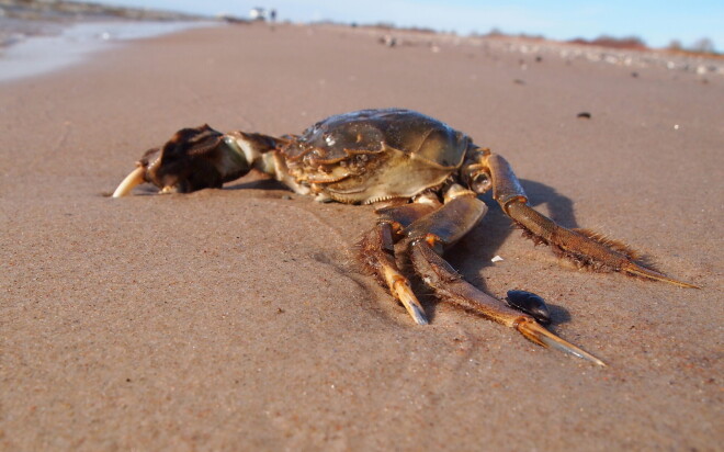 В праздничные выходные на лиепайском пляже на песке лежал китайский мохнаторукий краб. Размером с ладонь, свветло-желтый и круглый, он был без одной лапы и одной клешни. Возможно, рыбаки выкинули его из своих сетей, в которых этот гость Балтийского моря запутался, пишет rus.liepajniekiem.lv со ссылкой на Kurzemes Vārds.