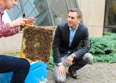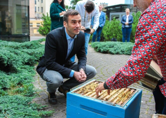 Мэр Риги Мартиньш Стакис ознакомился с процессом зимовки пчел в ульях Рижской думы