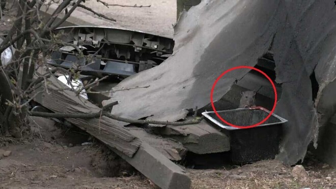 Это остановка общественного транспорта Риги «улица Грециниеку». Каждый день здесь автобуса или трамвая ждут толпы пассажиров. Голуби тоже любят эту площадку. Видно, что по всей длине остановки создана система крысиных пещер. Грызуны идут из одного туннеля к следующему.