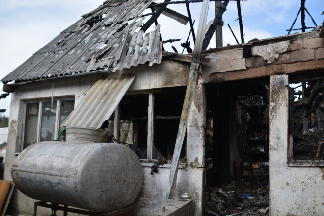 Пожарные из горящего дома еще успели вынести газовый баллон. Пожар удалось ликвидировать за четыре с половиной часа.
