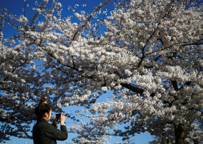 В парке Победы в Риге жителей города и в этом году порадовала цветущая сакура. Белые и нежно-розовые цветы привносят японскую атмосферу и привлекают посетителей.