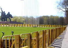 Уже 8 мая памятник в парке Победы огородили шлагбаумами