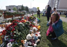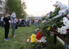 Стихийный мемориал в Казани: люди принесли к школе цветы, свечи и детские игрушки