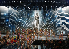 На видео, записанном на церемонии награждения, Меза одета в умопомрачительное обтягивающее красное платье в пол. Наряд украшен блестками и вырезом на спине.