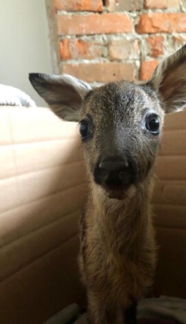 Несколько офицеров полиции приехали на место происшествия в городе Бельско-Бяло (Польша) после того, как им сообщили, что рядом с дорогой лежит олень, которого сбила машина. Когда полицейские приехали они, увидели сразу трех оленей: мать и двух новорожденных оленят. К сожалению, маму и одного из детенышей уже нельзя было спасти, но второй олененок, все еще привязанный к пуповине, был жив.