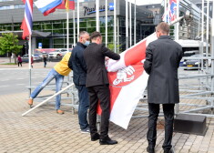 Некий мужчина в центре Риги пришел к постаменту с флагами Чемпионата мира по хоккею -202, где планировал вывесить красно-зеленый флаг Белоруссии. На видео он рассказывает о том, что политике не место в хоккее.