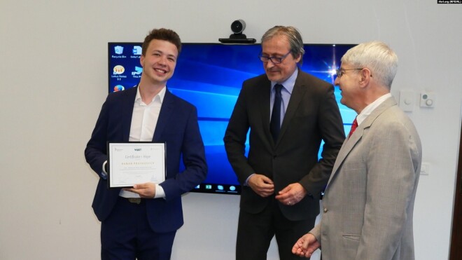 Задержанный в Беларуси Роман Протасевич был стипендиатом журналистской стипендии имени Вацлава Гавела, которую учредило Радио Свободная Европа/Радио Свобода и МИД Чехии. Стипендию присуждают за диссидентство и продвижение открытого общества через журналистику.
