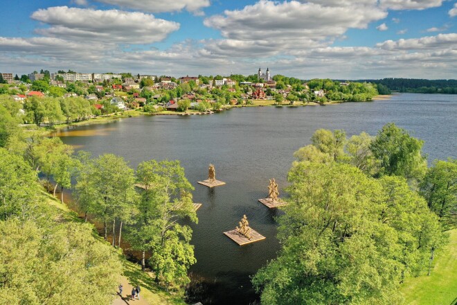Напомним, что Зарасай – это одна из курортных территорий Литвы. (В стране этот статус имеют также Тракай, Аникщяй, Игналина и Тракайский район. Есть еще и курорты: Паланга, Неринга, Друскининкай, Бирштонас). До этого лета город считался рекордсменом по числу голубых озер, теперь впереди и по созданию скульптур на них!