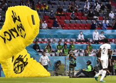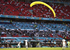На матче Евро-2020 между Францией и Германией активист в качестве акции протеста спрыгнул с парашютом на футбольное поле. Он едва не врезался в трибуну со зрителями при заходе на посадку.