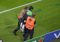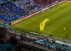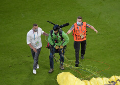 На чемпионате Европы по футболу (Евро-2020) парашютист приземлился на футбольном поле
