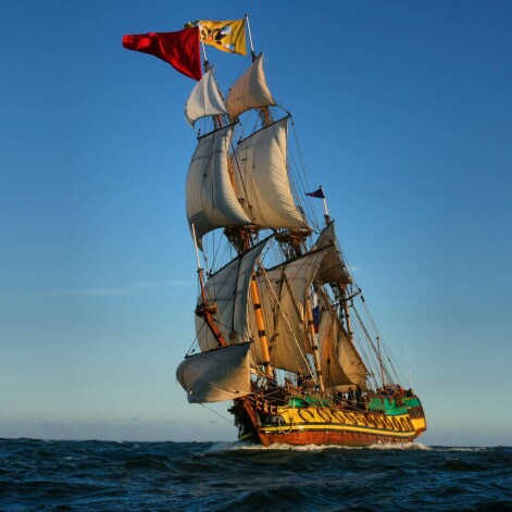 Северное море, Бискайский залив, Ла-Манш, Атлантика – куда только ни ходил «Штандарт». Самая суровая погода поджидала фрегат в феврале у мыса Финистерре в Испании – с волнами высотой до 10 метров. Корабль выдержал все испытания – решения прошлого в нем объединены с современными технологиями. На «Штандарте» есть не только паруса, но и двигатели, современная навигация, радиосвязь и современная система безопасности, в том числе и спасательная шлюпка.