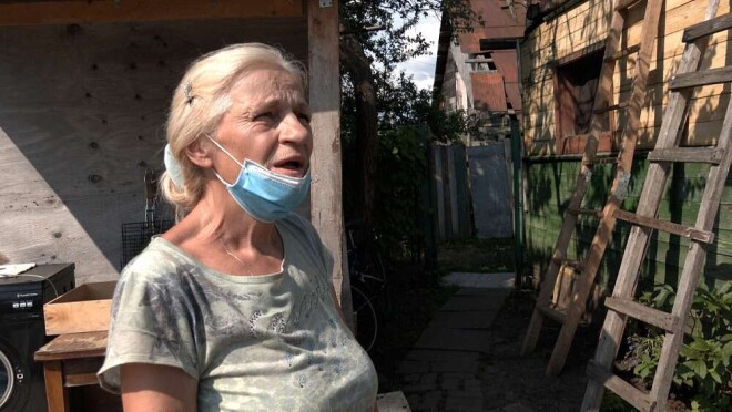 "Мы сидели на кухне, обедали. И мгновенно загорелось пламя, вот [показывает] пламя, сгорела яблоня. Пламя было со всех сторон", - говорит Инита, указывая на то, что у Науриса были язвы от тушения.