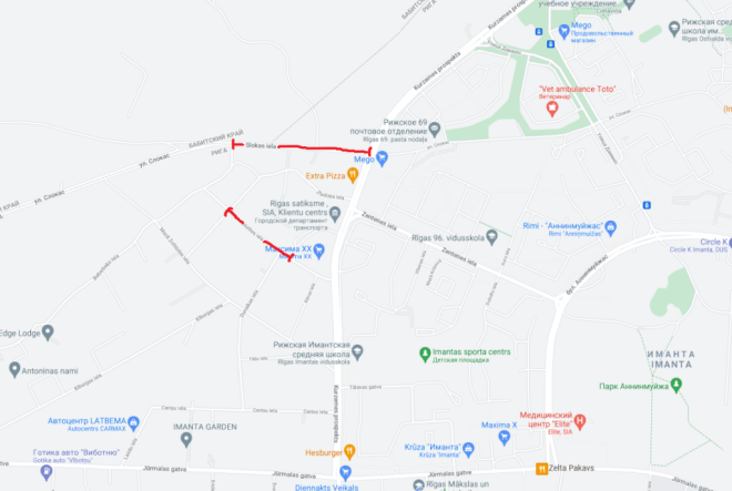 Ограничения будут введены и на улице Айритес на участке от улицы Зиедоня до здания по Айритес, 6, работы будут осуществляться поэтапно.