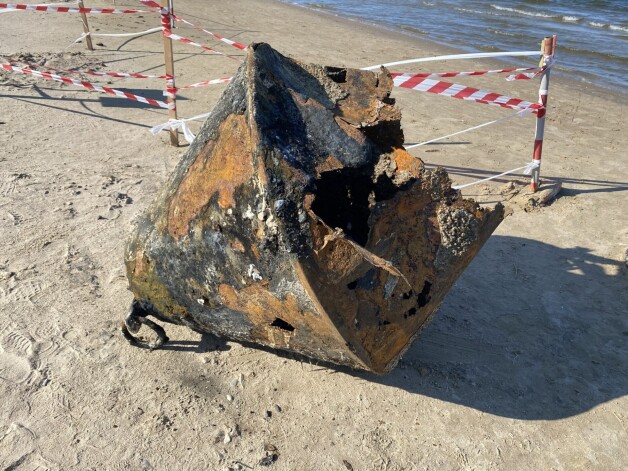На лиепайском пляже со дна моря подняты три ржавых буя; пострадавший подросток выздоравливает