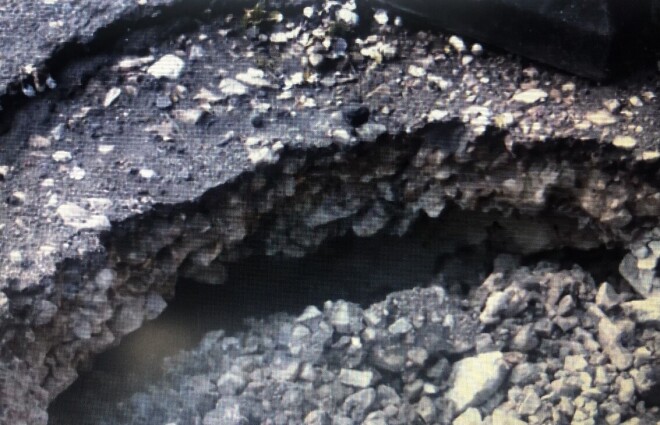 В Милгрависе жители уже месяц борются с увеличивающейся дырой во дворе