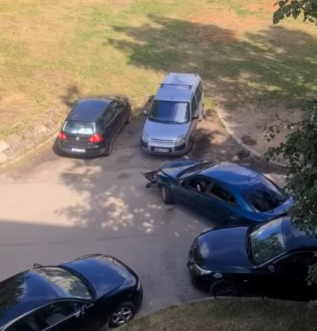 Водитель Mazda приехала навестить свою пожилую мать, которая живет на улице Гара 21. К сожалению, позже у нее возникли сложности с выездом из парковочного места. Один из жителей ближайшего дома успел вытащить телефон и заснять происходящее на видео.