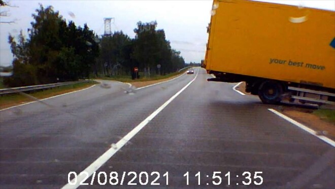 Мужчине, которого назовем Янис, удалось избежать серьезной, потенциально смертельной аварии на Рижской объездной дороге Балтэзерс-Саулкалне, прямо перед виадуком Даугавпилсского шоссе. На видеорегистраторе его машины можно увидеть, как безрассудный водитель грузовика пересекает непрерывную линию, чтобы резко повернуть налево. Учитывая неадекватные действия водителя на дороге, у Яниса возникли обоснованные подозрения, что мужчина находится в нетрезвом состоянии, поэтому он сообщил о происходящем в полицию.