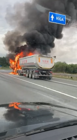 Известно, что грузовик загорелся во время движения, это произошло на шоссе Тинужи-Кокнесе.