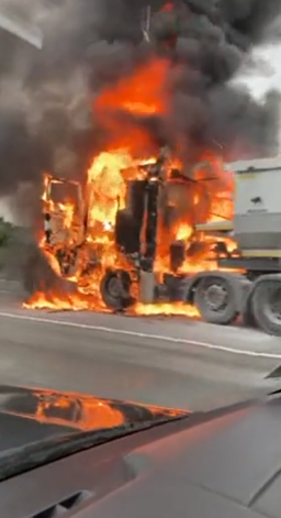 Во вторник, 17 августа, на Тинужском шоссе сгорел грузовик. Инцидент зафиксировали проезжавшие мимо водители. Видео показывает, как взрывается переднее колесо горящего грузовика.