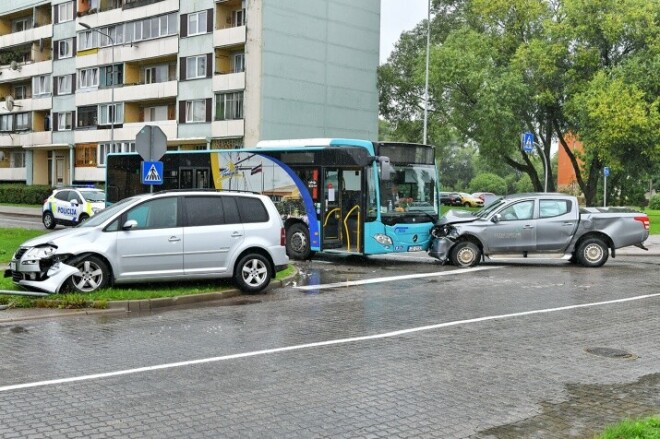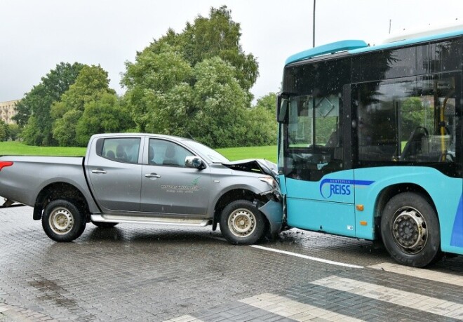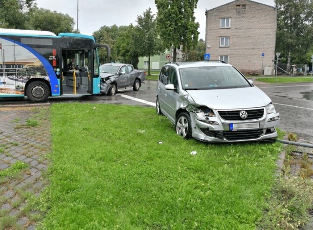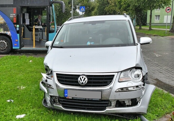 В аварии пострадали три автомобиля – Volkswagen, машина Латвияс валстс межи Mitsubishi и большой автобус Вентспилс рейсса Mercedes-Benz.