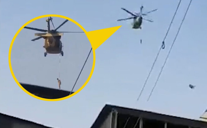 На кадрах видно, как над зданием летит вертолет, к которому на веревке подвешен человек. Ролик распространялся, в том числе с подписями о том, что вертолет Blackhawk принадлежит боевикам "Талибана", которые повесили на нем предположительно американского переводчика. Такой же версии придерживались некоторые СМИ, пишет портал Life.