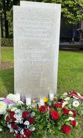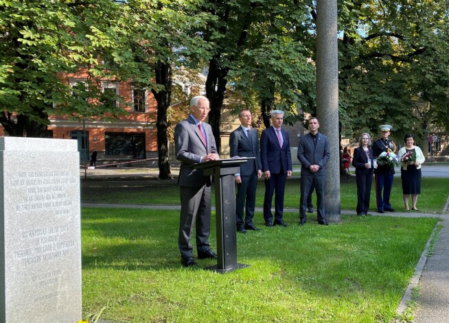 Чтобы почтить память о дне, когда произошли террористические атаки на Соединенные Штаты 11 сентября 2001 года, посольство США в Латвии провело поминальную службу в Риге, на Вашингтона лаукумс.
