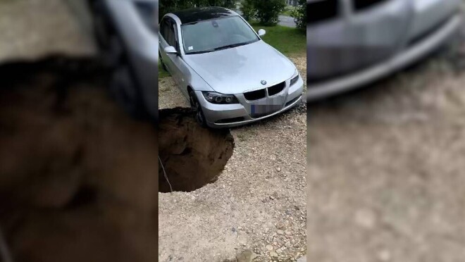 В минувший четверг машину марки BMW оставили во дворе дома на улице Баускас 28, и тут же один из жителей дома заметил, что творится нечто нехорошее. Владельцу автомобиля буквально за несколько секунд удалось избежать капитального ремонта автомобиля. "Именно там, где была машина, соседи увидели, что начала образовываться яма, и водителю удалось вовремя отъехать", - рассказал Андрис, который живет по соседству.