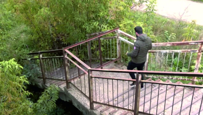 На первый взгляд может показаться, что разрушенный железобетонный мост с пробитыми отверстиями заброшен. Дорога к мосту огорожена сплошным забором, но люди уже несколько раз находили решение, ломая одну из решеток, чтобы добраться до моста, сообщает передача "900 секунд". "Страшно, но все идут, и я тоже иду", - рассказывает программе женщина, проходящая мост. "Мне три километра от дома до супермаркета Olimpia и то же самое на другой стороне канала. А так я попадаю напрямую".