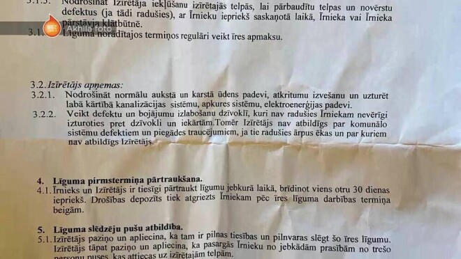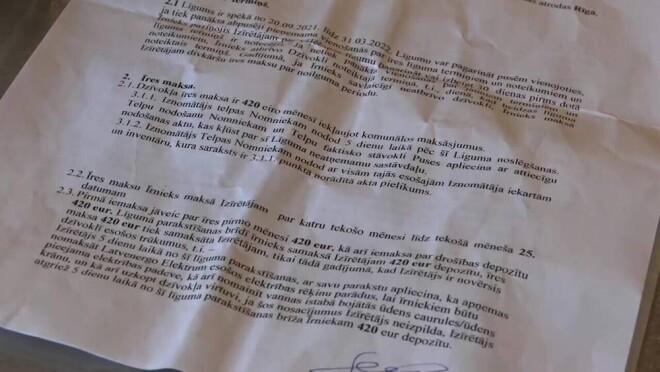 Акхил и его друзья внесли залог наличными за аренду владельцу Гатису в размере 420 евро и половину месячной арендной платы - 210 евро. Кроме того, еще и брокеру было оплачено 200 евро за поиск квартиры и подготовку договора. Однако подписанный документ подвергается критике со стороны юриста Арманда Логина, который в нем видит потенциальные признаки мошенничества.