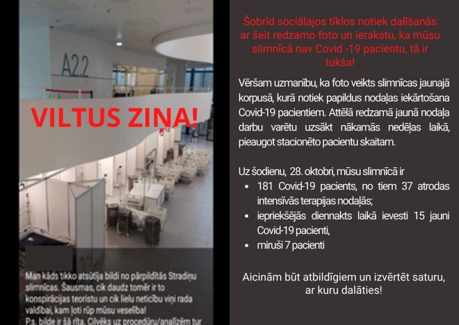Нет пациентов с коронавирусом и койки пустуют? Больница Страдиня опровергла распространение ложной информации в социальных сетях