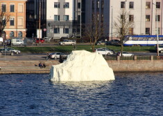 "Айсберг коррупции" в Даугаве сначала пожелтел, а потом вообще пропал. Появившийся неделю назад арт-объект от Бюро по предотвращению и борьбе с коррупцией стоил 145 тысяч евро и должен был стоять до декабря.