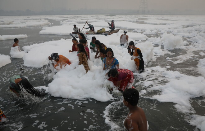 Одна из священных рек Индии покрылась ядовитой пеной. Это ухудшило ситуацию в Нью-Дели, где жители уже пострадали от плотного смога над столицей.