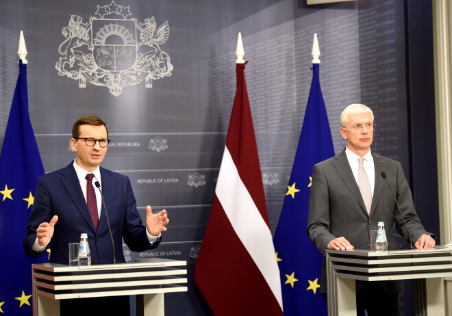 Премьер-министр поблагодарил Моравецкиса за визит в Ригу, поскольку это подтверждает, что ЕС, страны Балтии и Польша едины и останутся едиными, а также будут продолжать координировать свои действия.