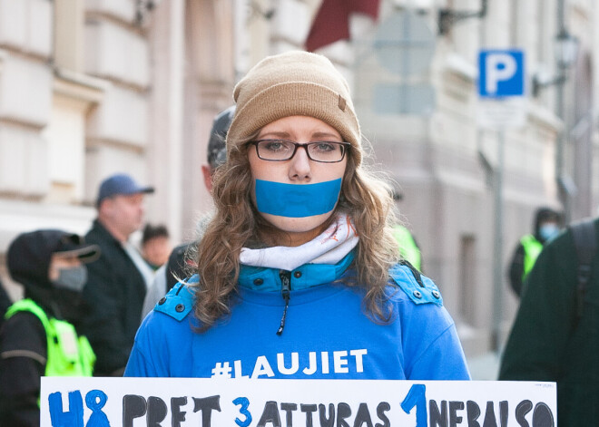 Студенты на "тихом пикете" у Сейма призвали разрешать невакцинированным учиться очно