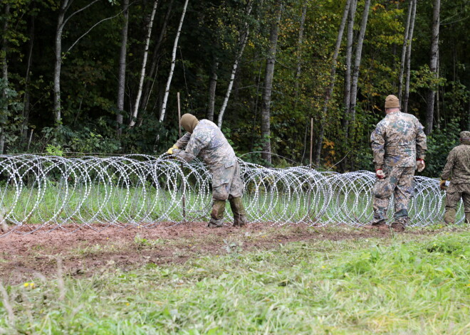Lai kavētu nelegālo migratnu plūsmu, uz Latvijas-Baltkrievijas robežas tiek uzstādīts Slovēnijas Aizsardzības ministrijas dāvinātais pagaidu žogs.