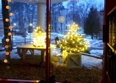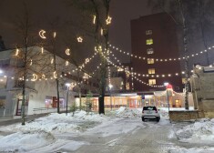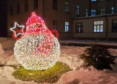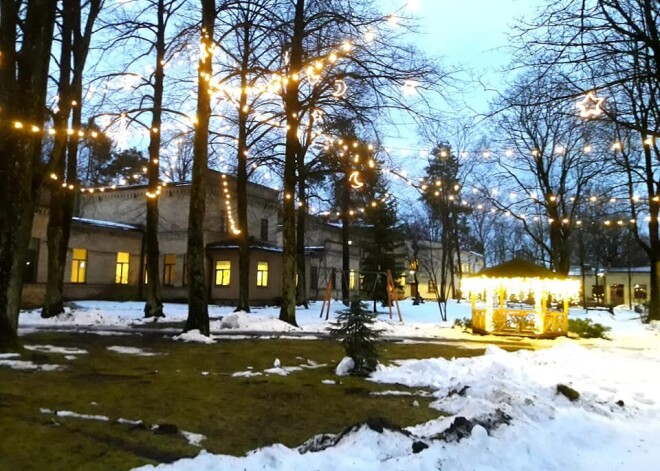 Темные углы больничного парка и деревья осветили камнями, звездами, цепочками светильников и другими визуально впечатляющими и светоносными объектами. Постаралась компания "December Design", а Рижская дума позаботилась о новогодней елке на территории больницы.