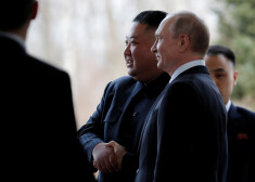 Лидер Северной Кореи Ким Чен Ын и президент России Владимир Путин во время встречи во Владивостоке