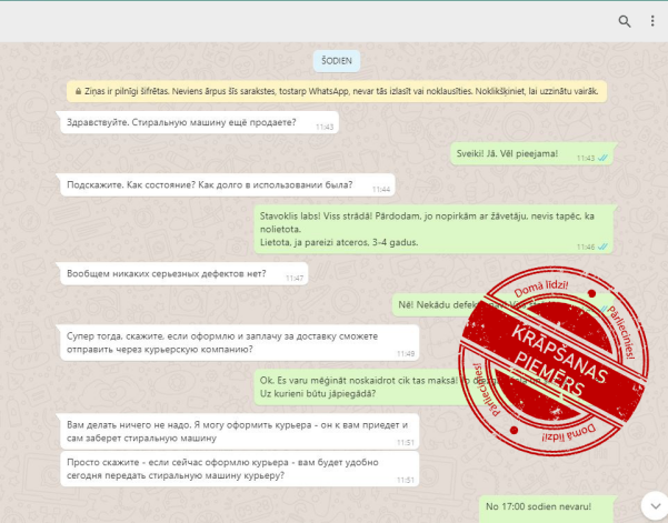 - Мошенники общаются как на русском, так и на латышском языках. До сих пор мошенники использовали в переписке только русский язык, но было несколько случаев, когда в переписке использовался и латышский;