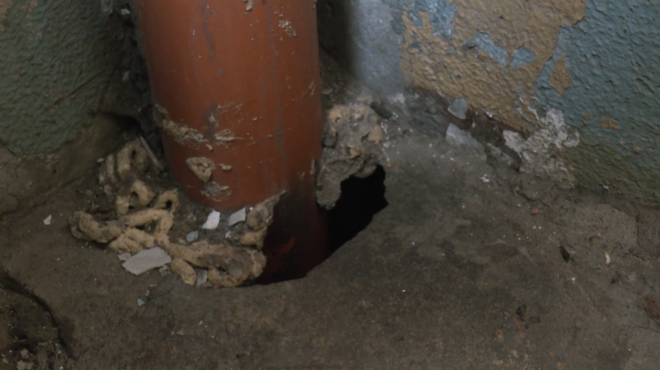 Жителям дома номер 5 по улице Андрея Сахарова не нужно ждать долго, чтобы заснять грызунов в действии. Крысы регулярно используют мусорные контейнеры в качестве источников пищи, а свои укрытия они устраивают в дырках, ведущих в подвал. По непонятной для домовладельцев причине грызуны поселились в первом подъезде, сообщает передача Degpunktā.