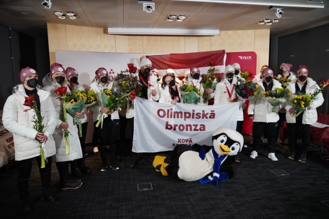 Победителей Олимпийских игр, прибывших из Пекина, встретили в международном аэропорту Rīga во второй половине дня в пятницу, 11 февраля.