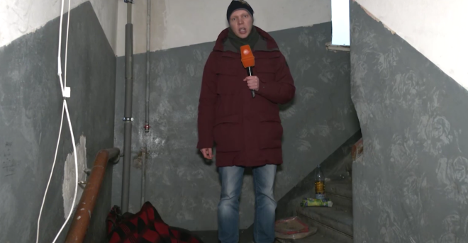 "Надо приехать рано утром, тогда тут наркоманы, бомжи. В обоих подъездах. Они здесь регулярно", - говорит один из рабочих, Артис.