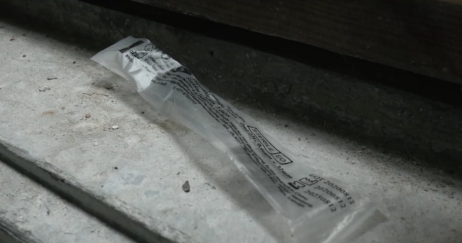 Лестничная дверь открыта для всех, кто хочет войти. Обойдя все этажи, журналисты Bez Tabu никого не встретили. В квартирах тихо, но по некоторым деталям видно, что тут бывали незваные гости - на пятом этаже брошена упаковка от шприца.
