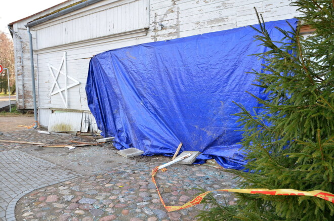 Дрифтовал и не справился с управлением: в Курземе мужчина на легковушке врезался в фасад местного кафе