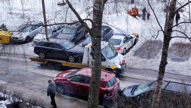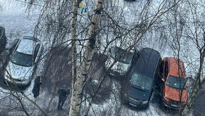 Все было как в домино - она врезалась в бусик, тот в Chrysler, этот в следующий Chrysler и он уже врезался в наш Peugeot. Водителя занесло, и она поехала дальше по двору. Пыталась либо уйти, либо скрыться с места происшествия, но машина застряла. Она поехала задним ходом и врезалась в сугроб".
