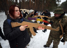 Украинцы с деревянными автоматами AK-47 готовятся к войне