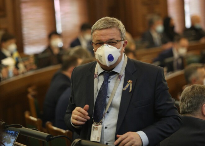 Сначала депутат Артус Кайминьш с трибуны Сейма призвал Спруде надеть маску, как это делают другие парламентарии.