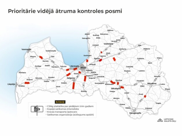 Пилотный проект системы определения средней скорости движения был внедрен 1 апреля 2019 года на семикилометровом участке шоссе Тинужи-Кокнесе и оказался, на взгляд LVC, успешным. Скорость транспортного средства фиксируется с учетом времени, которое оно проводит в пути от одного пункта до другого.